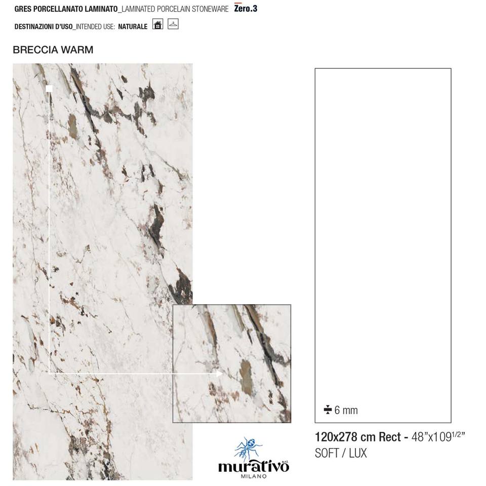 GRES Porcellanato Marmo Breccia WARM OPACO 278X120 6mm Polished Tiles for Interior and Exterior for Floor Wall in Living Room