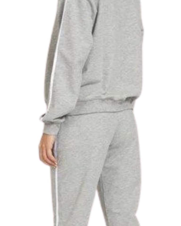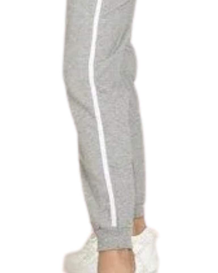 ชุดวอร์มผ้าฟลีซสีเทาสำหรับผู้หญิงชุดวอร์มแขนยาวลายแถบด้านข้างสีขาวและกางเกงใส่วิ่งใส่อยู่บ้านแบบลำลองให้ความอบอุ่น