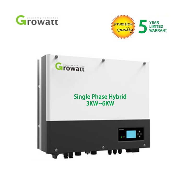 GROWATT SPH 6000 ราคาถูก อินเวอร์เตอร์ไฮบริด 5 ปี รับประกัน 5 กิโลวัตต์ 3000 วัตต์ ระบบโซลาร์เซลล์แบบเฟสเดียว