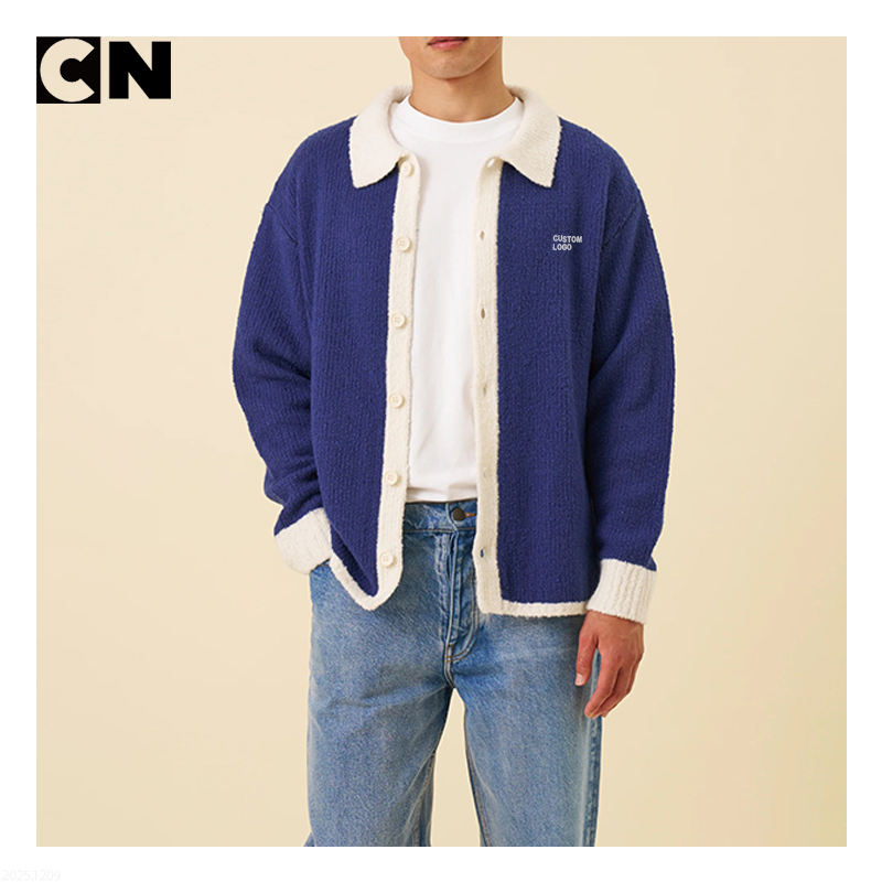 เสื้อคาร์ดิแกนไหมพรมผู้ชาย ป้องกันรอยยับ ระบายอากาศได้ดี ออกแบบโลโก้ได้ตามต้องการ ได้รับการรับรอง GRS สำหรับฤดูใบไม้ร่วงและฤดูหนาว