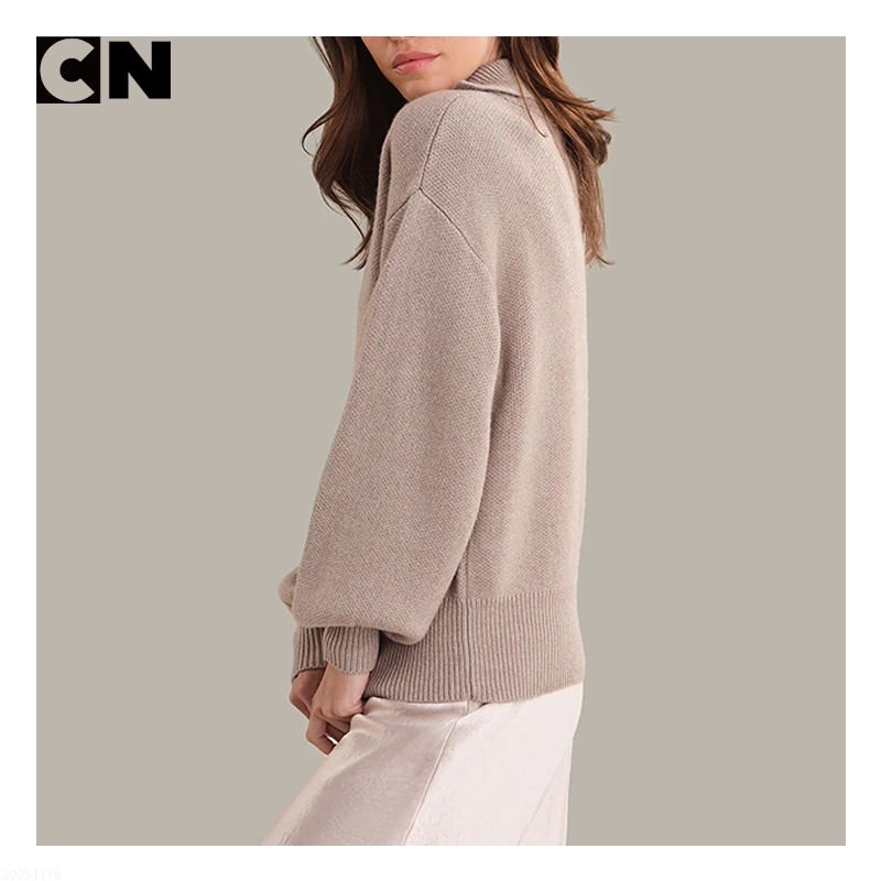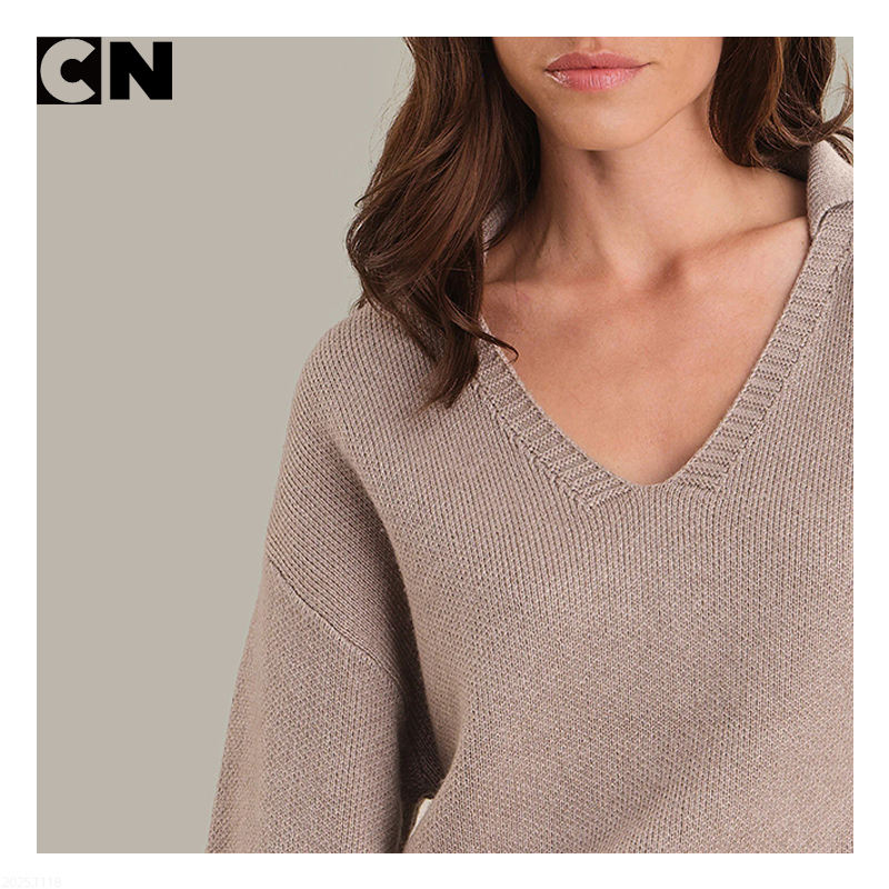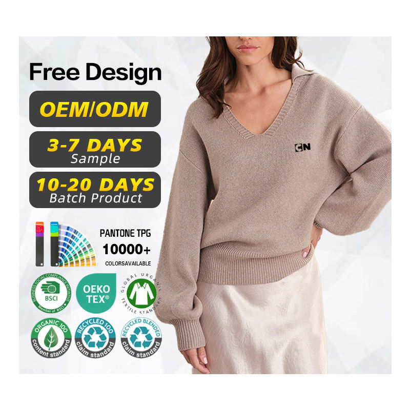 เสื้อสเวตเตอร์แบบสวมหัวเสื้อโปโลผ้าวูลถักแบบลำลองสำหรับผู้หญิงโลโก้ตามสั่งผลิตจากโรงงานได้รับการรับรอง GRS