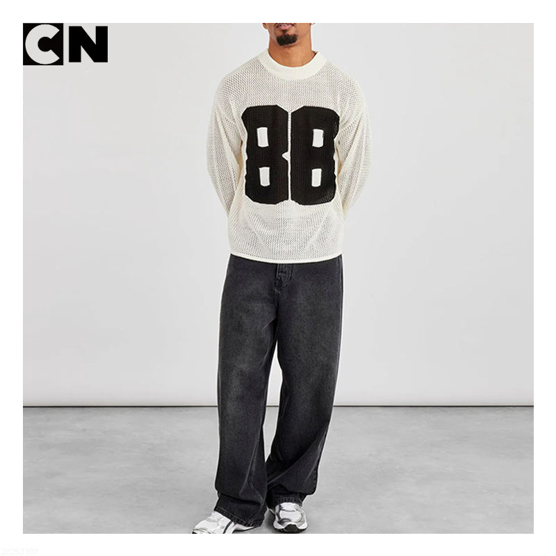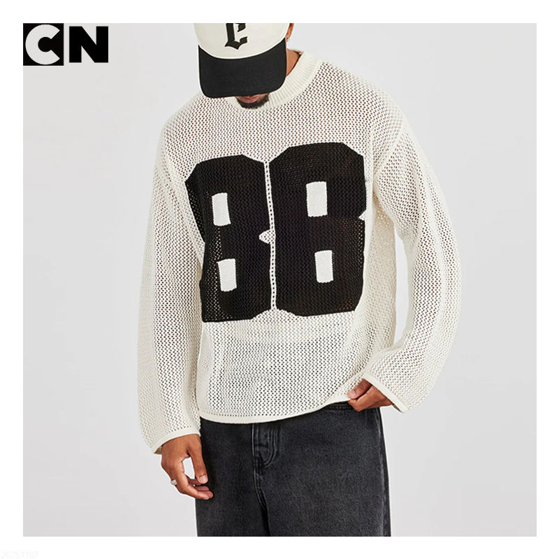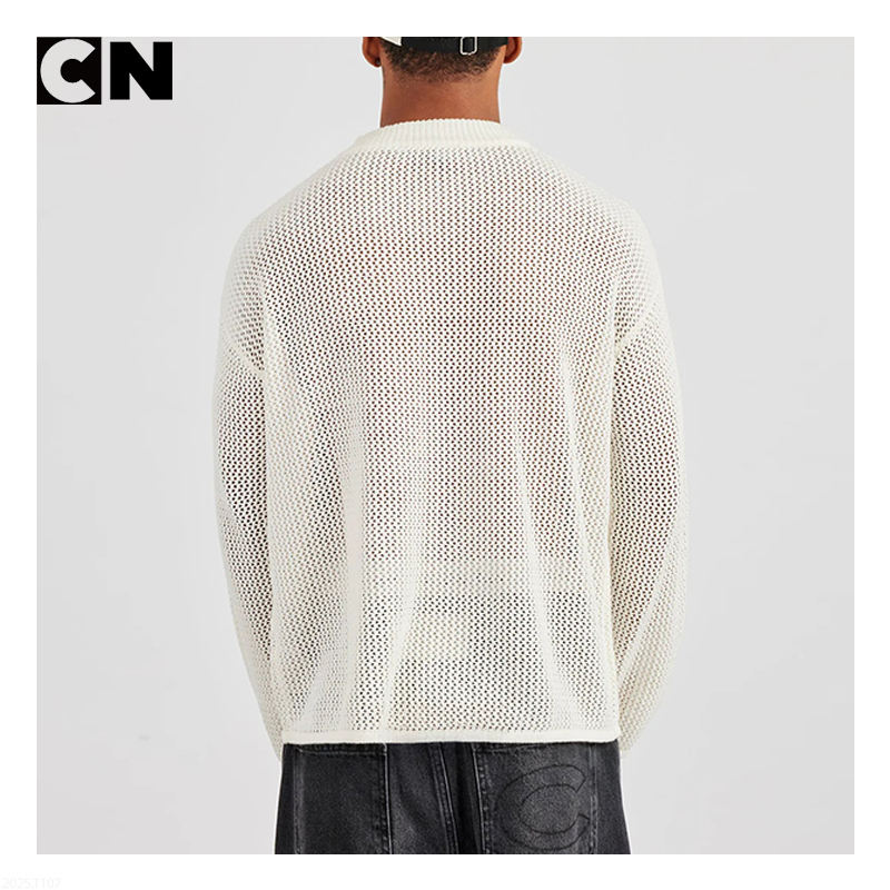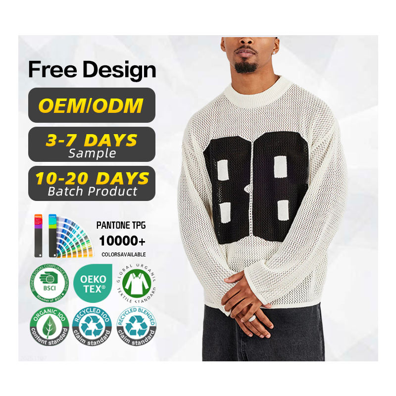 เสื้อสเวตเตอร์ถักสำหรับผู้ชายเสื้อสเวตเตอร์ถักตาข่ายแขนยาวปักโลโก้ได้ตามต้องการ