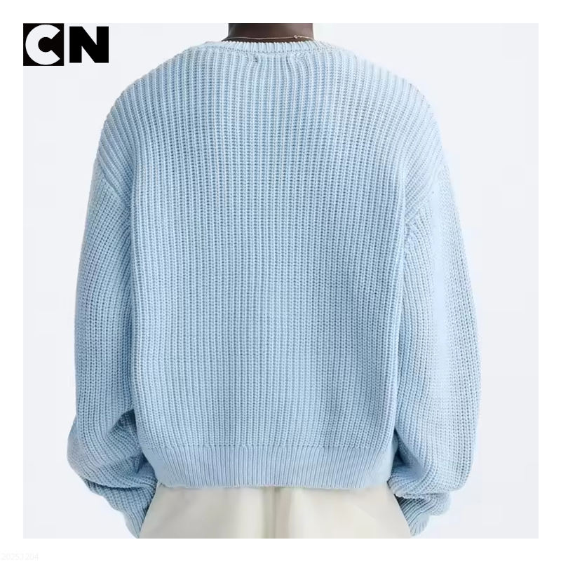 ผู้ผลิตเสื้อสเวตเตอร์ที่ได้รับการรับรอง GRS ออกแบบโลโก้ตามสั่ง เสื้อสเวตเตอร์ผู้ชายผ้าฝ้ายถักแบบริบ ทรงโอเวอร์ไซส์ คอกลม สำหรับฤดูหนาว