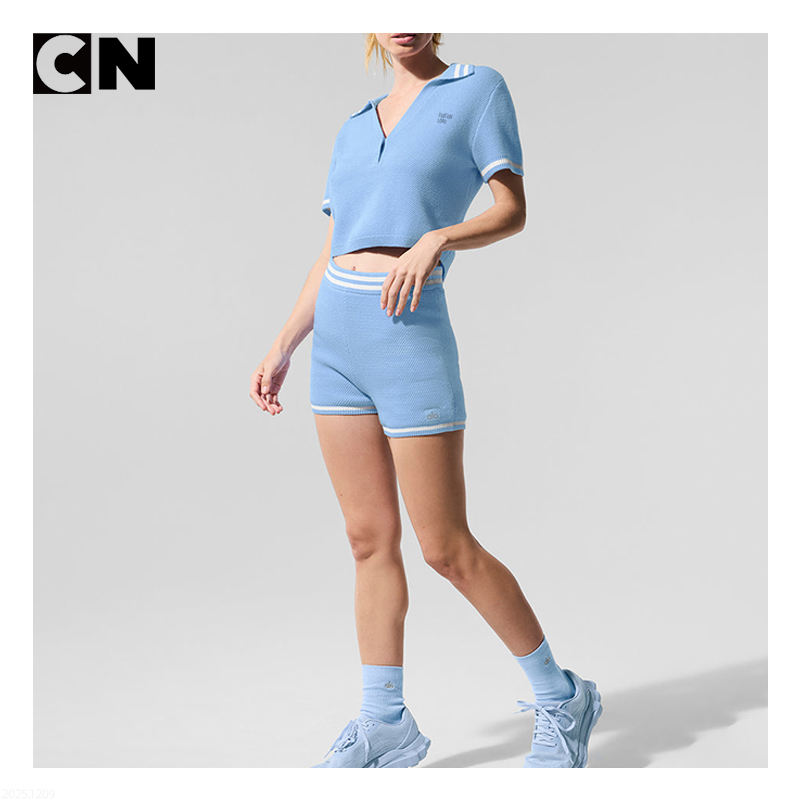 ผู้ผลิตเสื้อสเวตเตอร์ที่ได้รับการรับรอง GRS ออกแบบโลโก้ตามสั่ง ชุดเสื้อโปโลแขนสั้นและกางเกงขาสั้นสำหรับผู้หญิง ทำจากผ้าฝ้ายผสมขนสัตว์ สีฟ้า สำหรับเล่นเทนนิส