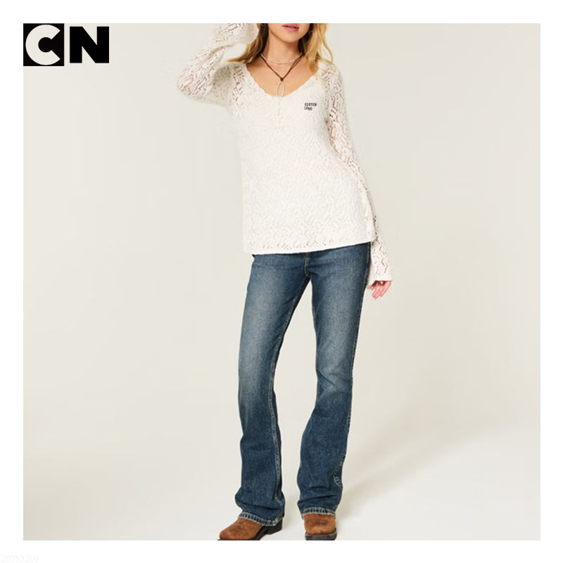 ผู้ผลิตเสื้อสเวตเตอร์ที่ได้รับการรับรอง GRS ออกแบบโลโก้ตามสั่ง เสื้อสเวตเตอร์ผู้หญิง ผ้าฝ้ายผสมโพลีเอสเตอร์ แฟชั่นใหม่ คอวีถักแบบเปิด
