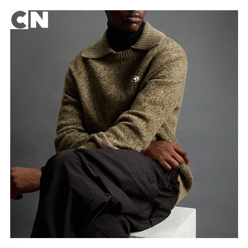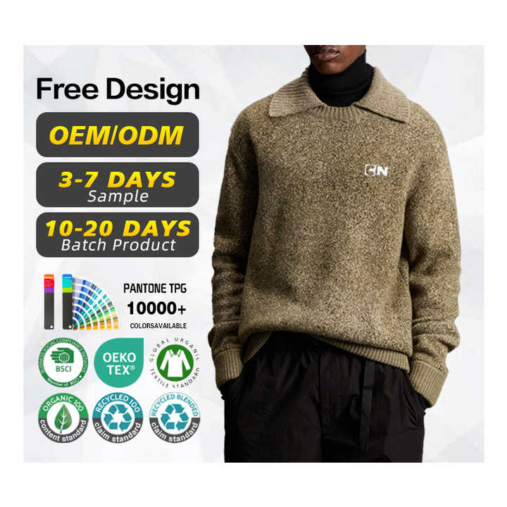 เสื้อสเวตเตอร์ถักสำหรับผู้ชายเสื้อโปโลผ้าแจ็คการ์ดขนสัตว์แท้สำหรับฤดูใบไม้ร่วงฤดูหนาวได้รับการรับรองจาก GRS