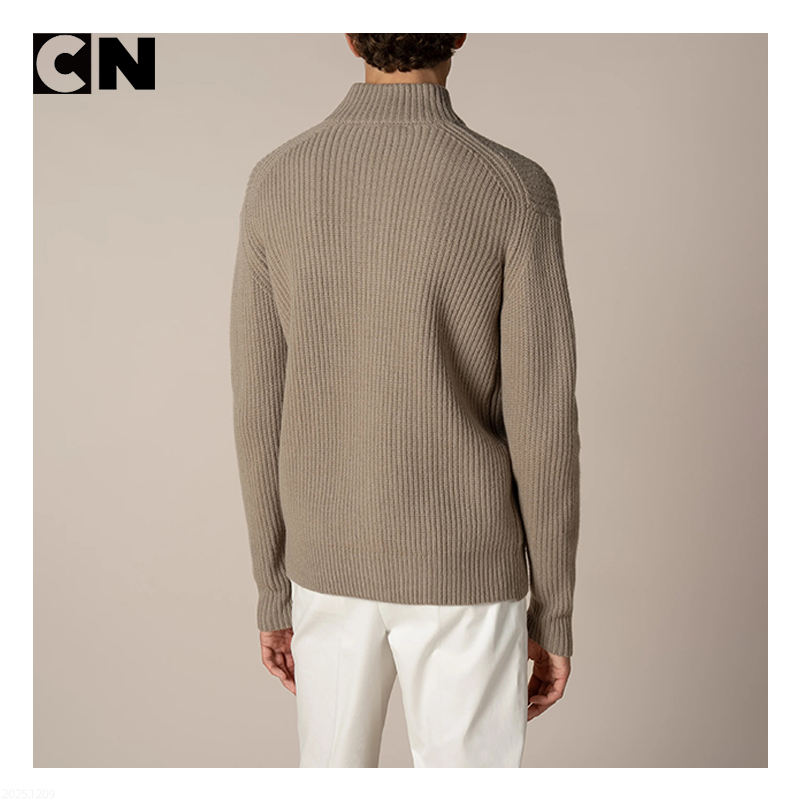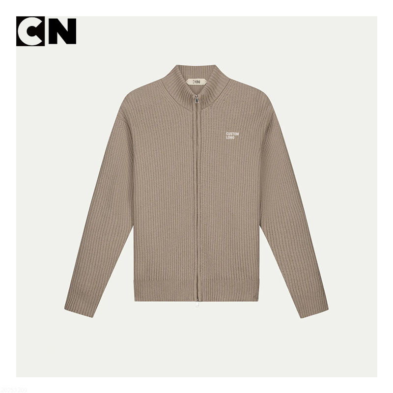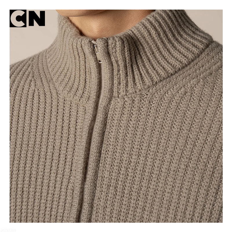 ผู้ผลิตเสื้อสเวตเตอร์ที่ได้รับการรับรอง GRS รับทำโลโก้ เสื้อคาร์ดิแกนไหมเมอริโนสำหรับผู้ชาย สีน้ำตาล ลายริบแนวตั้ง ซิปยาวถึงคอ ถักทอสำหรับฤดูหนาว ระบายอากาศได้ดี