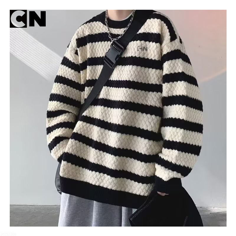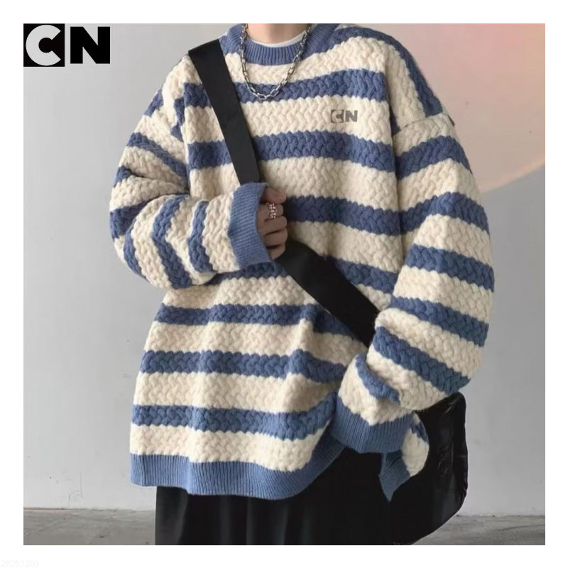ผู้ผลิตเสื้อสเวตเตอร์ที่ได้รับการรับรอง GRS ขายส่งเสื้อสเวตเตอร์ไหมพรมถักลายทาง คอกลม ทรงเข้ารูป สไตล์แฟชั่นฤดูหนาวสำหรับผู้ชาย แบบสั่งทำพิเศษ