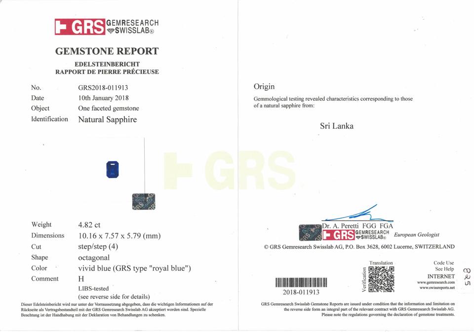 พลอยไพลินสีน้ำเงินสดใสทรงแปดเหลี่ยมเจียระไน ได้รับการรับรองจาก GRS ผลิตโดยผู้ผลิตอัญมณีหายาก ราคาขายส่ง ซื้อเลย
