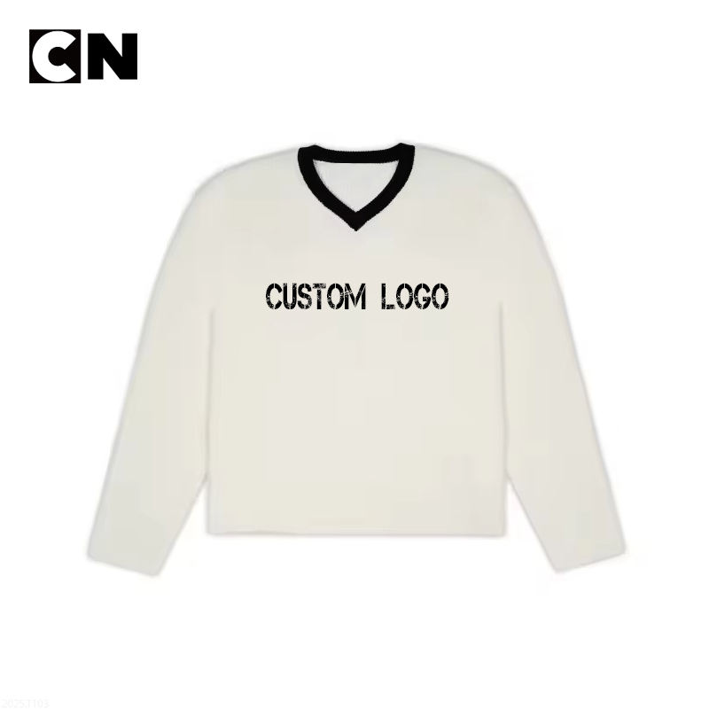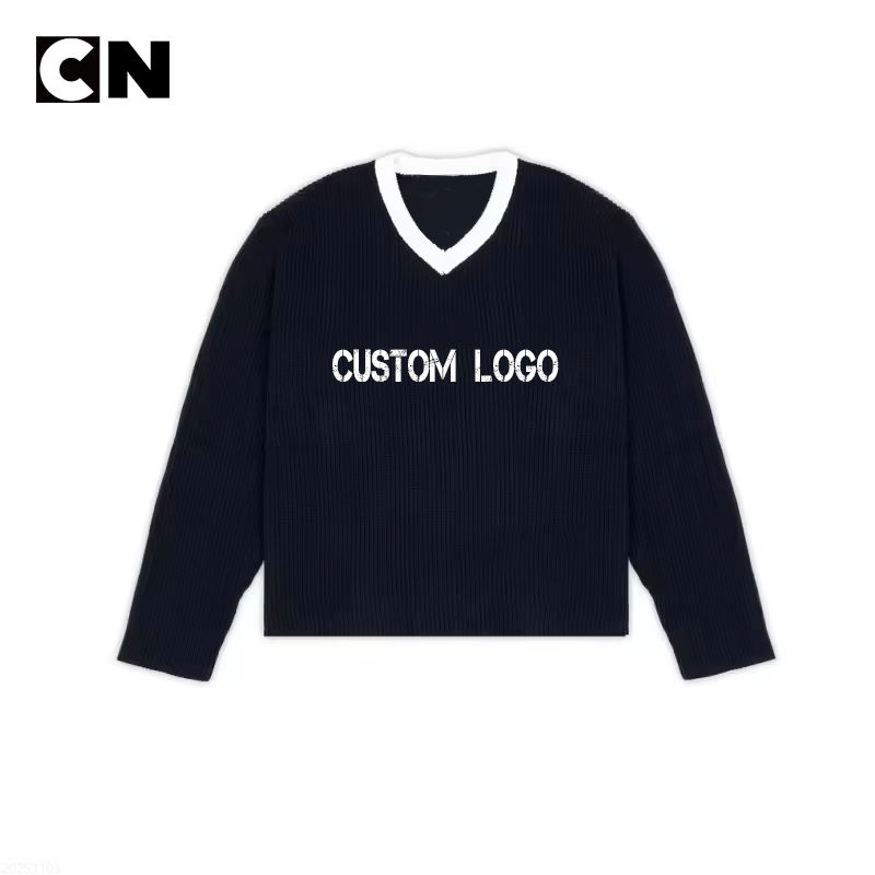 เสื้อกันหนาวถักแบบสวมหัวคอวีสำหรับทุกเพศเสื้อกันหนาวถักแบบสวมหัวผ้าคอตตอนสำหรับ100% ได้รับการรับรองจากโรงงาน