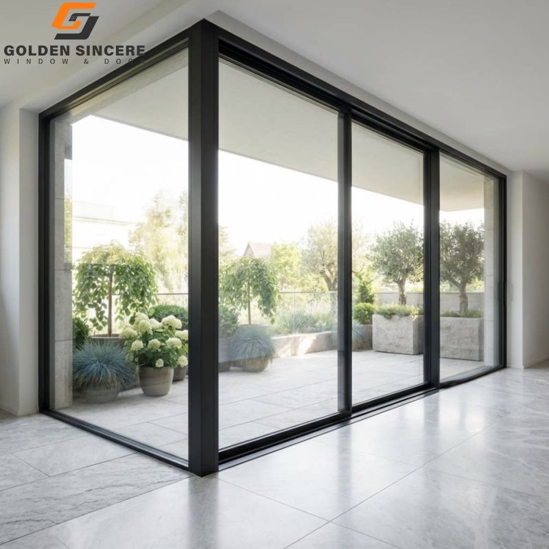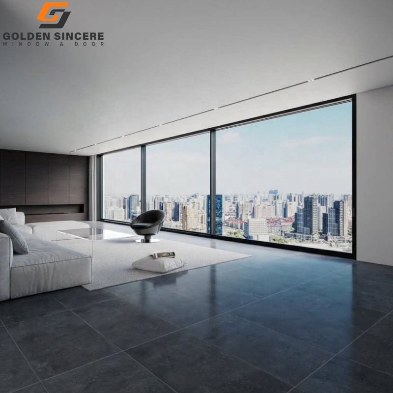 ประตูบานเลื่อนกระจกสูงจรดเพดาน GS พร้อมกรอบอลูมิเนียม สำหรับที่อยู่อาศัยระดับไฮเอนด์