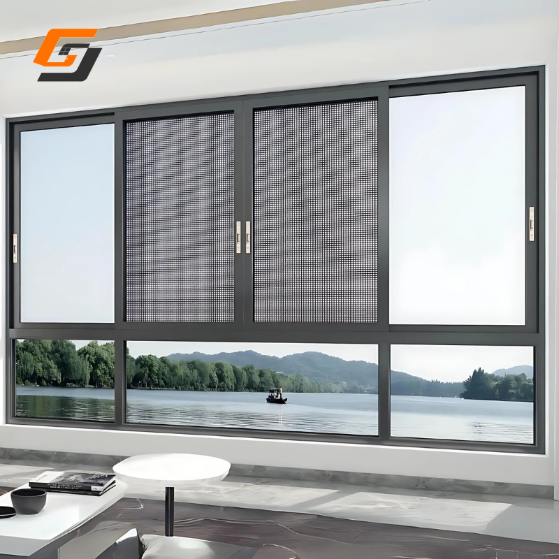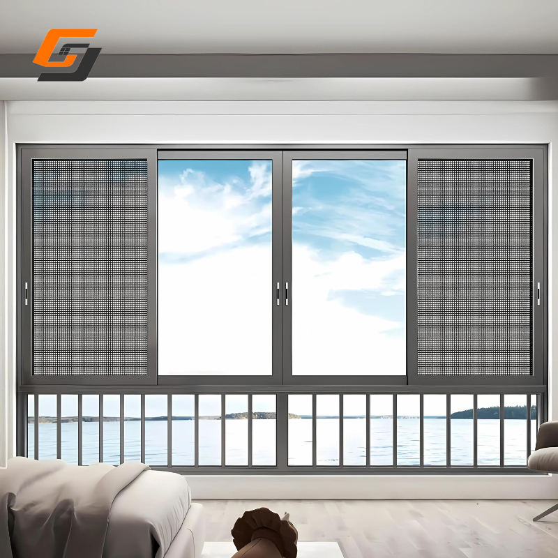หน้าต่างบานเลื่อนอลูมิเนียมรางคู่คุณภาพสูง GS พร้อมมุ้งลวดสำหรับระเบียงและห้องนั่งเล่น