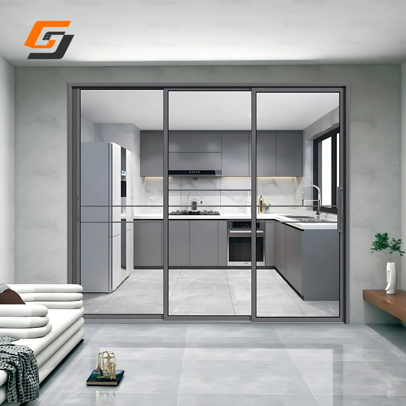 ระบบประตูบานเลื่อนกระจกแบบแขวน โครงอะลูมิเนียมสไตล์โมเดิร์น GS