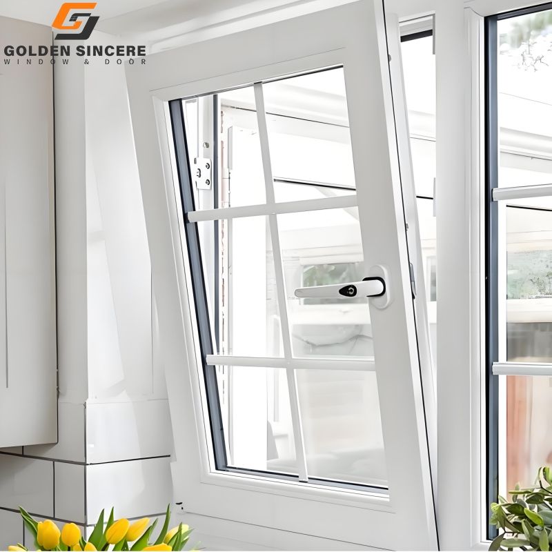 GS หน้าต่างอลูมิเนียมกันน้ำแบบเอียงและหมุนได้สำหรับใช้ในห้องครัวและห้องน้ำ