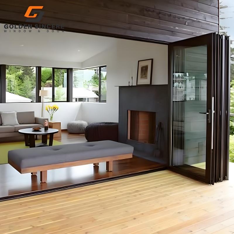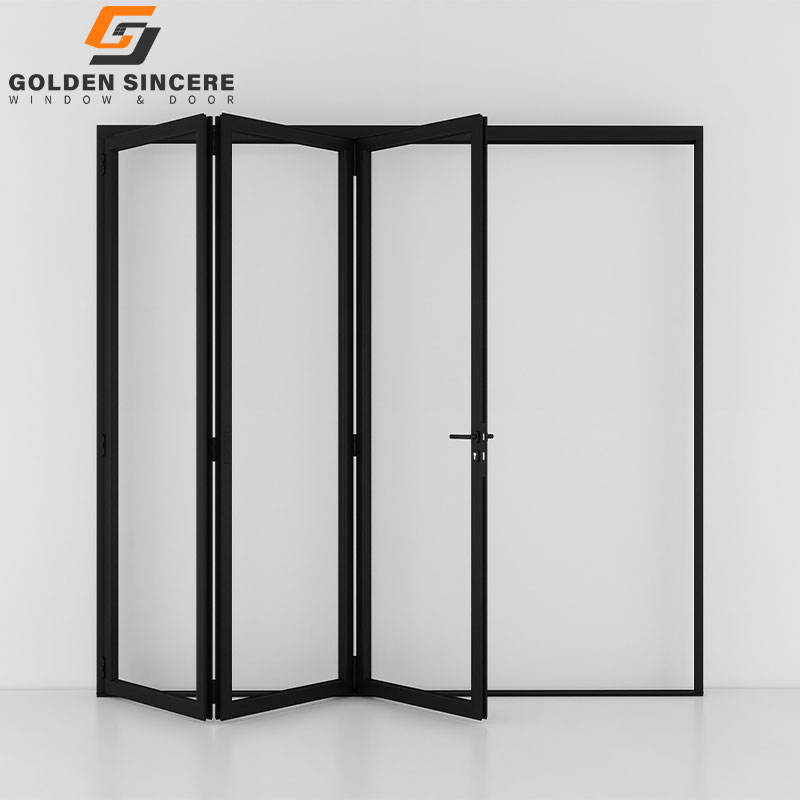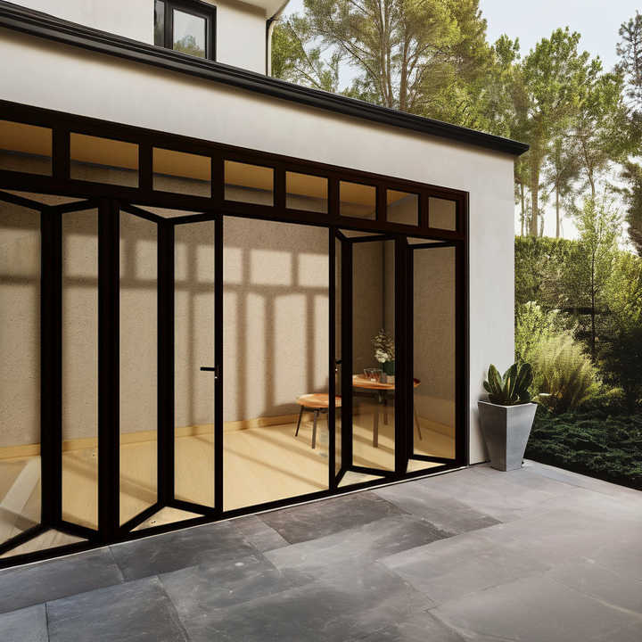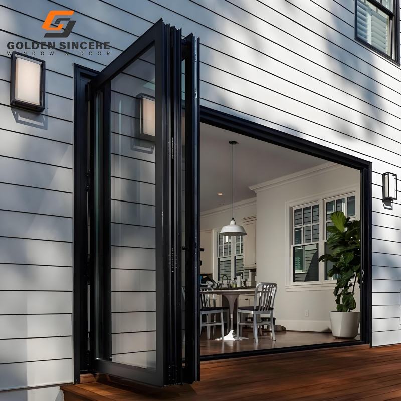 ประตูบานเลื่อนพับได้แบบรางสูงสำหรับภายนอกอาคาร ทำจากอะลูมิเนียมและกระจก ยี่ห้อ GS Wholesale