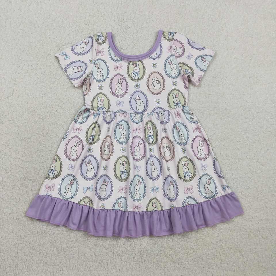 ชุดเดรส GSD2863ลายไข่อีสเตอร์กระต่ายสีม่วงสำหรับเด็กผู้หญิงชุดเสื้อผ้าสำหรับเด็กทารกผู้หญิง