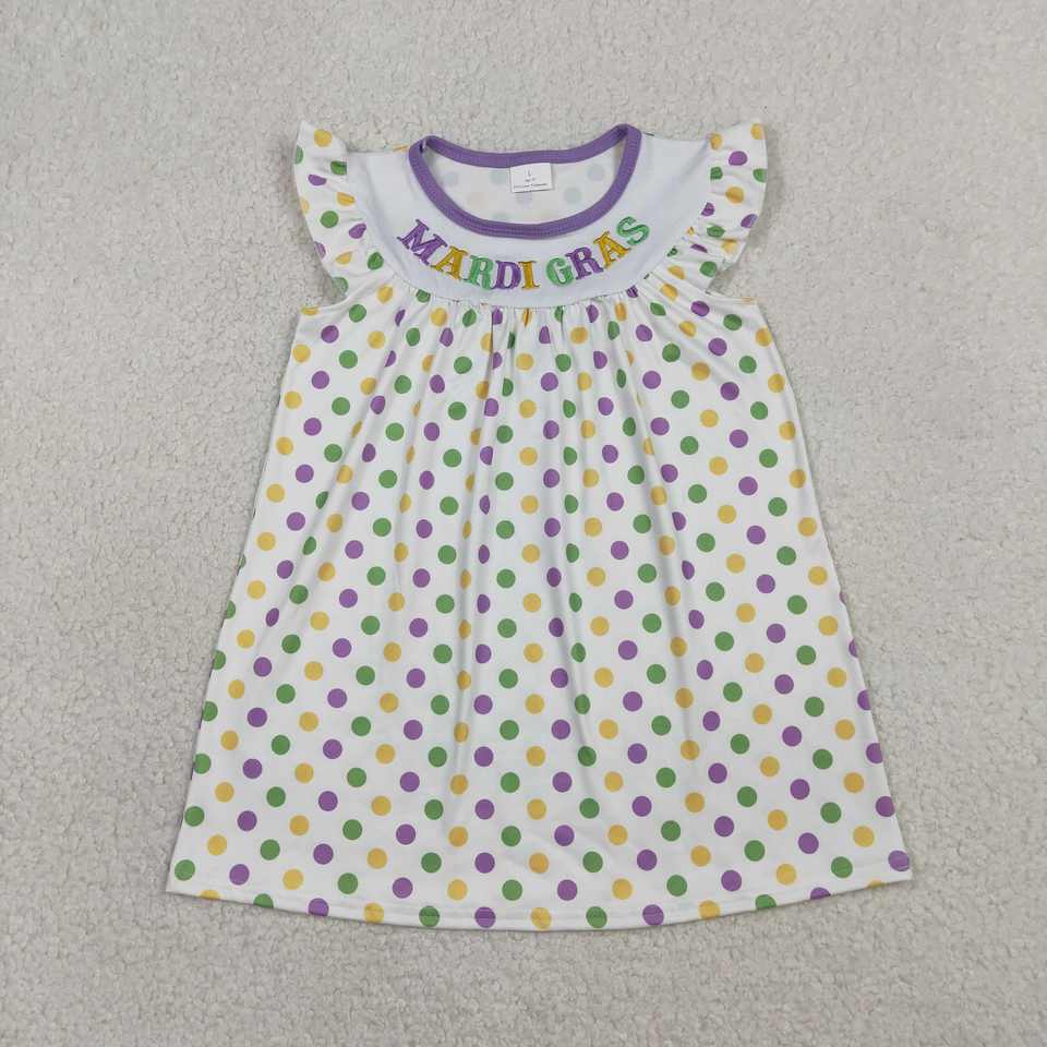 GSD3022 RTS Baby Girl Summer Mardi Gras Pattern Print Sleeveless Breathable Anti-Wrinkle Knee-Length Beach Silhouette Dress