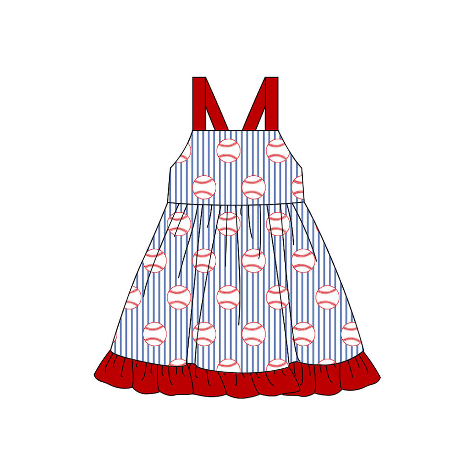 เดรสแขนระบายพิมพ์ลายกากบาทสีฟ้าสำหรับเด็กผู้หญิงเดรส GSD3200ตามสั่งฤดูร้อน
