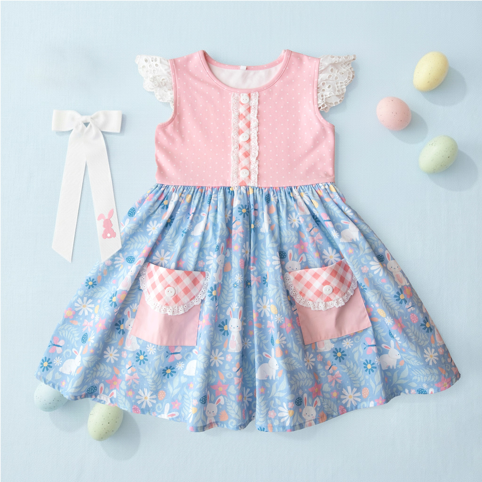 ชุดเดรสเด็กผู้หญิง GSD3412 ลายกระต่ายพิมพ์ลายดอกไม้สีชมพู สำหรับฤดูร้อน แบบไม่มีแขน ความยาวระดับเข่า เหมาะสำหรับงานพิธีศีลจุ่ม
