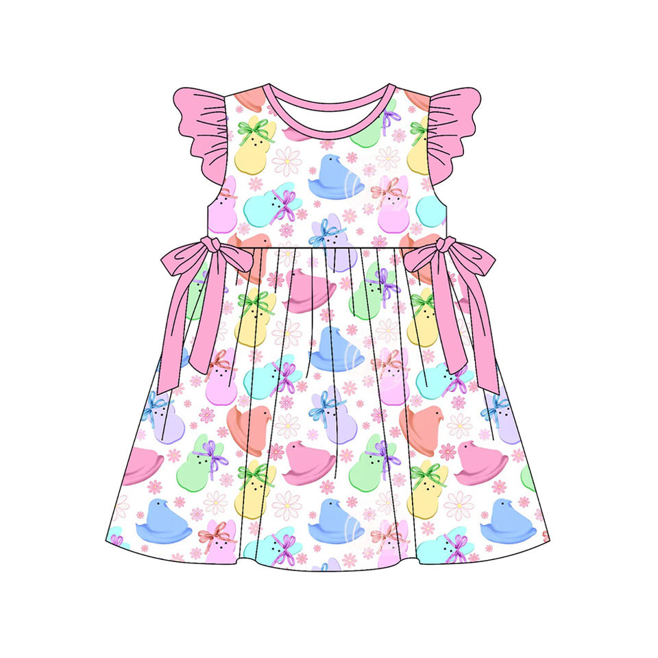 ชุดเดรสเด็กผู้หญิงลายดอกไม้และกระต่ายอีสเตอร์ แขนสั้น รุ่น GSD3451 สำหรับฤดูร้อน ขายส่ง