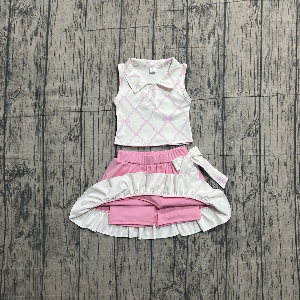 ชุดกระโปรงเด็กผู้หญิง แขนยาว ลายสก็อต ผ้าคอตตอนผสมสแปนเด็กซ์ สีชมพู แต่งโบว์ รุ่น GSD3479 CUSTOM Little Active Girl Casual ขายส่ง