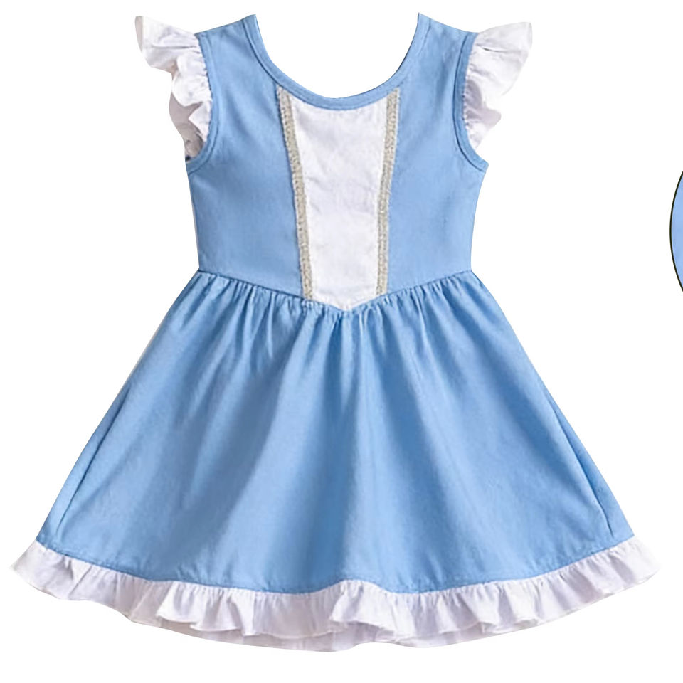 GSD3710 RTS ชุดเดรสแขนสั้นสีฟ้าสำหรับเด็กผู้หญิงชุดฤดูร้อน