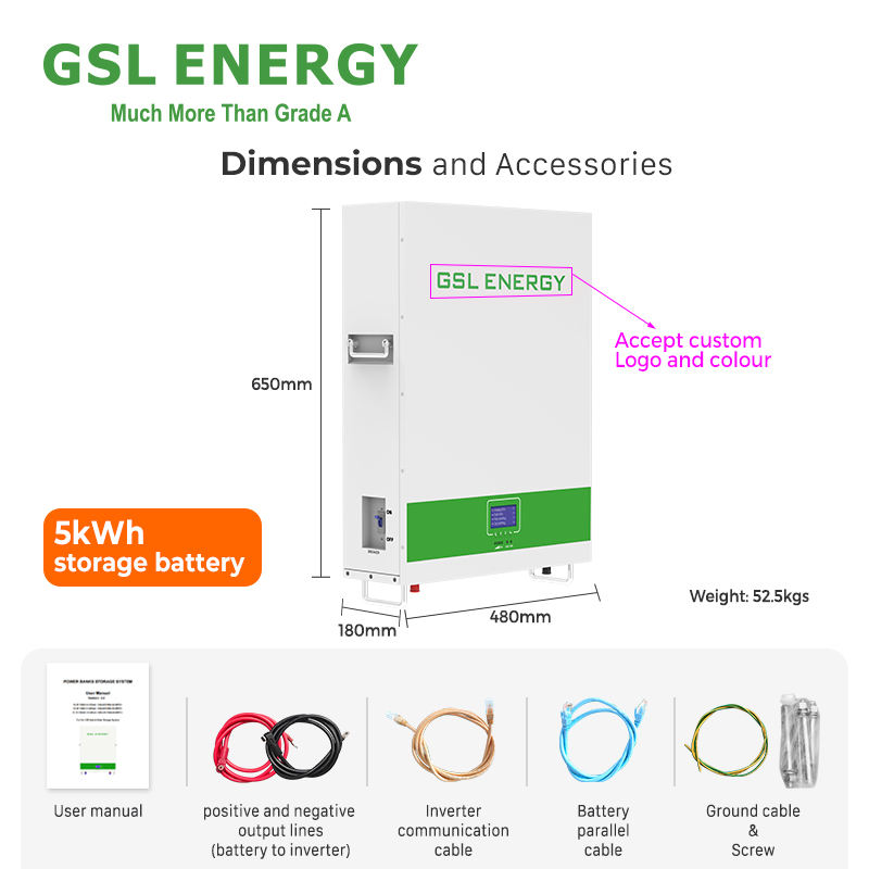 GSL Energy OEM Home Energy Storage Powerwall 48V 5kwh 10kwh 15kwh Battery Wall Mounted Lifepo4 Lithium Battery 10 Years Warranty