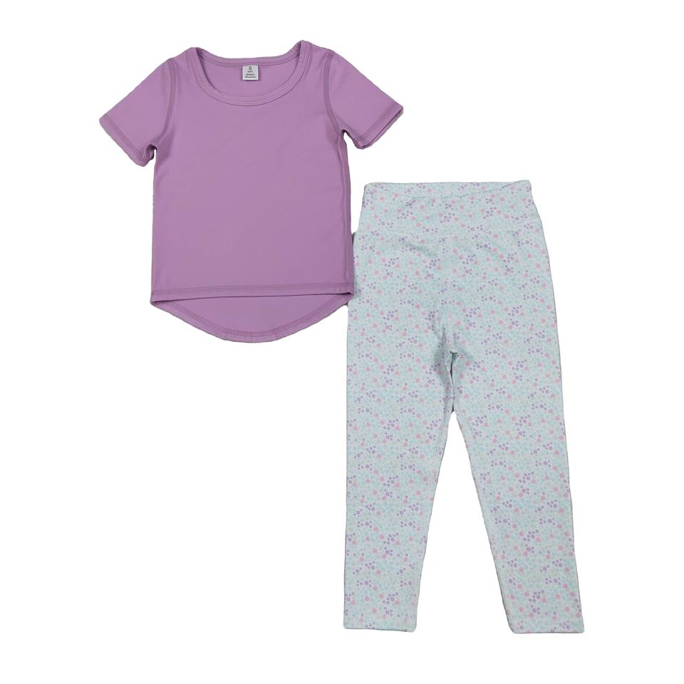 GSPO2067 RTS ชุดเด็กผู้หญิงแขนสั้นพิมพ์ลายดอกไม้สีม่วงชุดฤดูใบไม้ร่วงขายส่ง