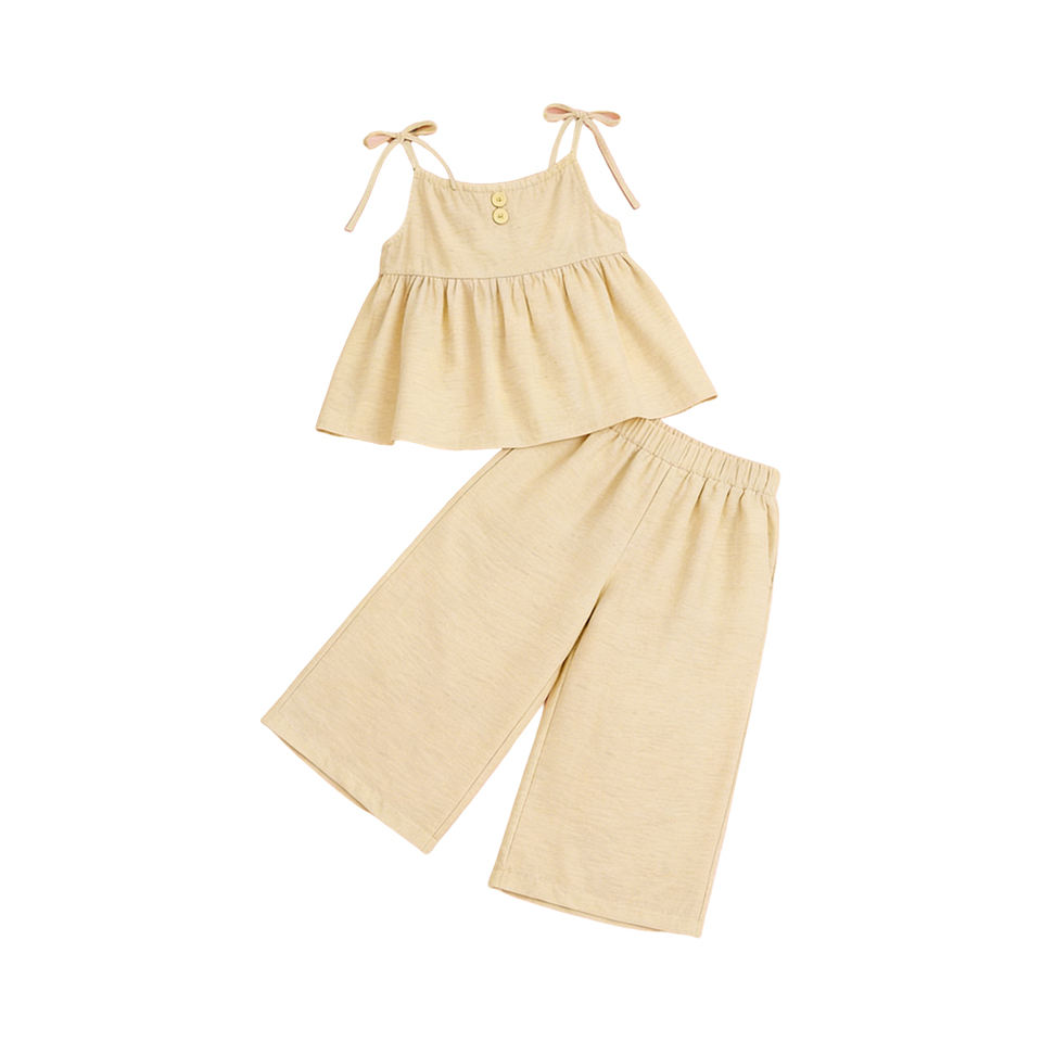 ชุดโบว์แขนกุดสำหรับเด็กผู้หญิงชุดโบว์แขนกุดสำหรับใส่ลำลองพิมพ์ลายสีพื้นสีเหลือง GSPO2300ออกแบบได้ตามต้องการ