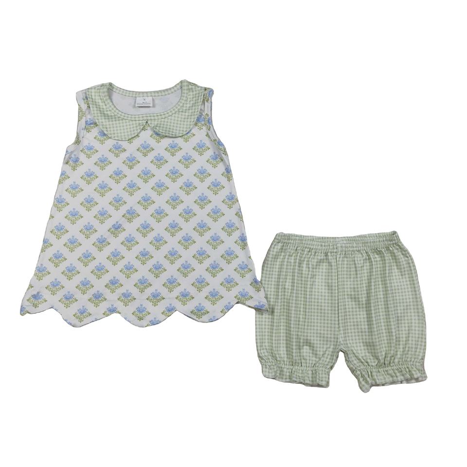 GSSO2850 RTS ชุดเด็กผู้หญิงแขนสั้นลายสก๊อตสีเขียวลายสก๊อตสีฟ้าลายสก๊อตสีเขียวสำหรับฤดูร้อน