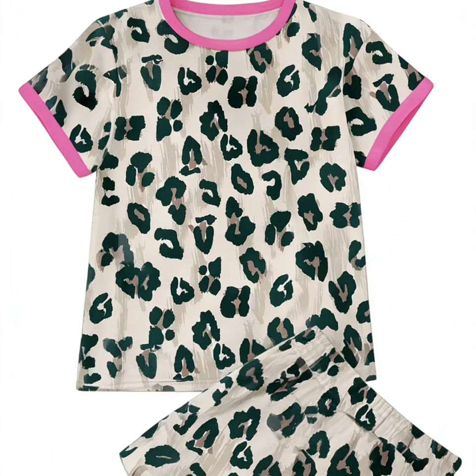 ชุดฤดูร้อนลายเสือดาวสำหรับเด็กผู้หญิง GSSO3407 ชุดเสื้อผ้าเด็กแขนสั้นขายส่งสำหรับเด็กผู้หญิง