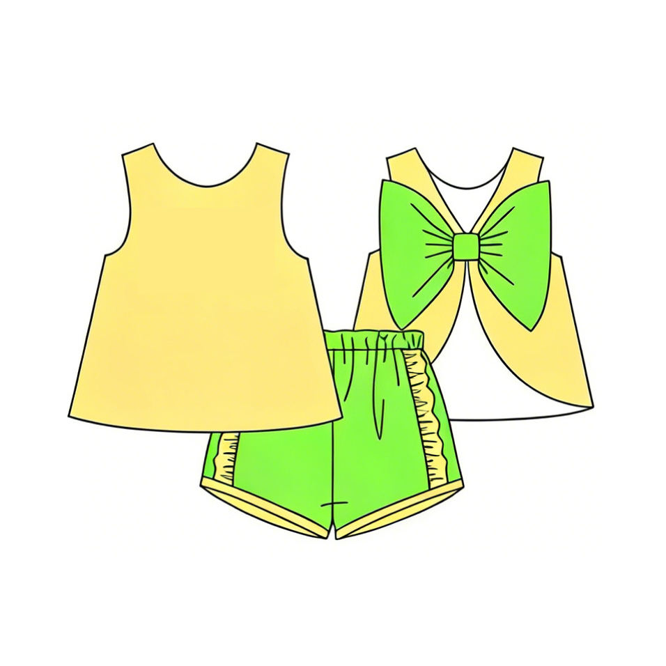 ชุดเด็กผู้หญิงแขนกุดชุดพิมพ์ลายสีฟ้าทึบสำหรับเด็กผู้หญิงชุด GSSO3463กำหนดเองได้