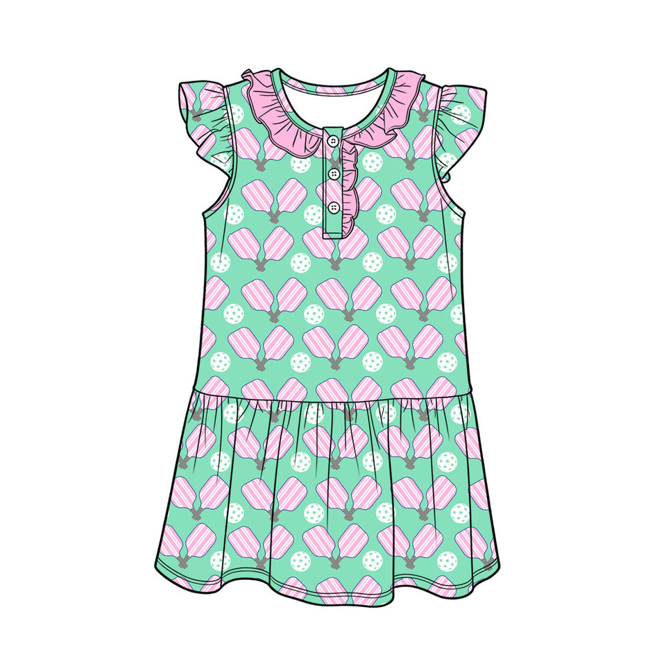 GSSO3597 custom Little Active Girl green pink pat Print Casual Short Sleeve Outfits Kids Wholesale Children's Set