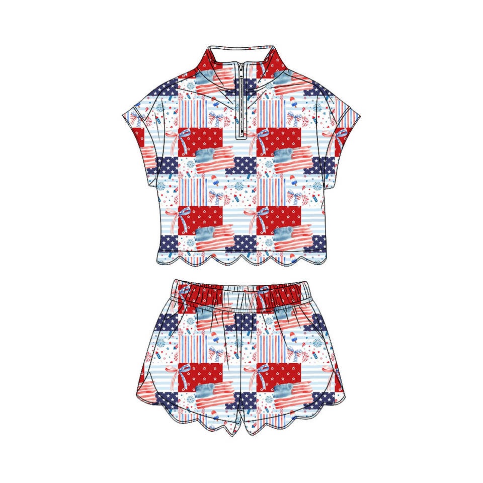 GSSO3599 ชุดลำลองแขนสั้นพิมพ์ลายวันชาติอเมริกา 4 กรกฎาคม สำหรับเด็กผู้หญิง ขายส่งชุดเด็ก