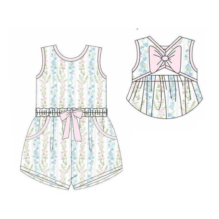 ชุดเด็ก GSSO3606 ลายดอกไม้สีชมพูเขียว แขนบานผูกโบว์ สไตล์ลำลอง สำหรับเด็กผู้หญิง ขายส่ง