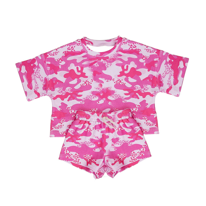 ชุดเด็กผู้หญิงแขนสั้นลายดอกไม้โบว์สีฟ้า GSSO3646 รุ่น Custom Little Active Girl ขายส่งชุดเด็ก