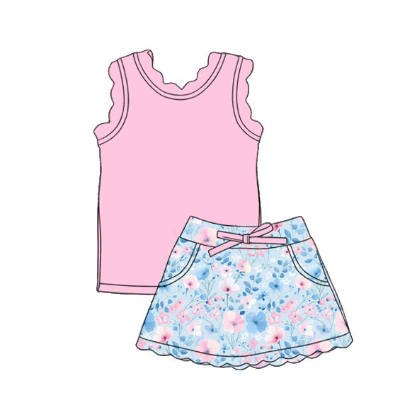 GSSO3771 Custom Little active girl purple solid flowers print summer outfits kids wholesale girl child summer shorts sleeve set