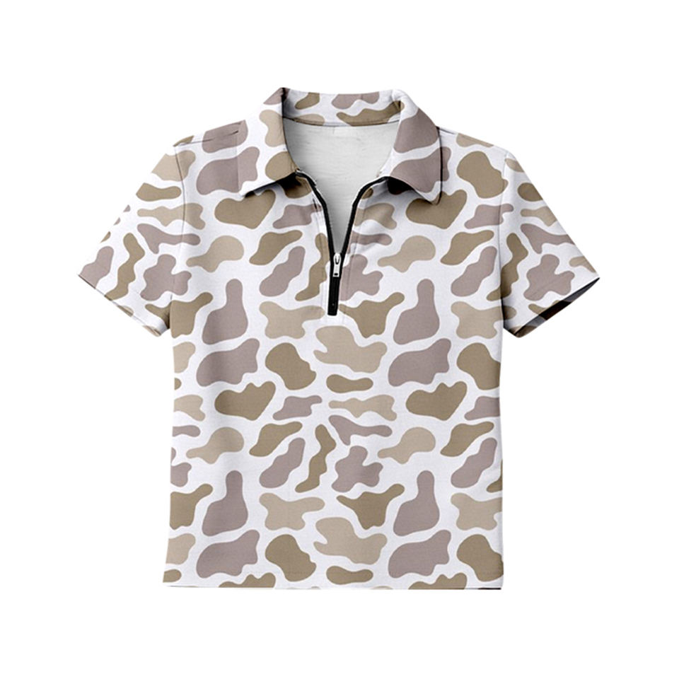 เสื้อท็อปผู้หญิงลายพรางมะกอกแบบสั่งทำ GT1596 แขนสั้น ซิปปิด ป้องกันรอยยับ ขายส่ง เสื้อผู้ใหญ่สำหรับฤดูร้อน