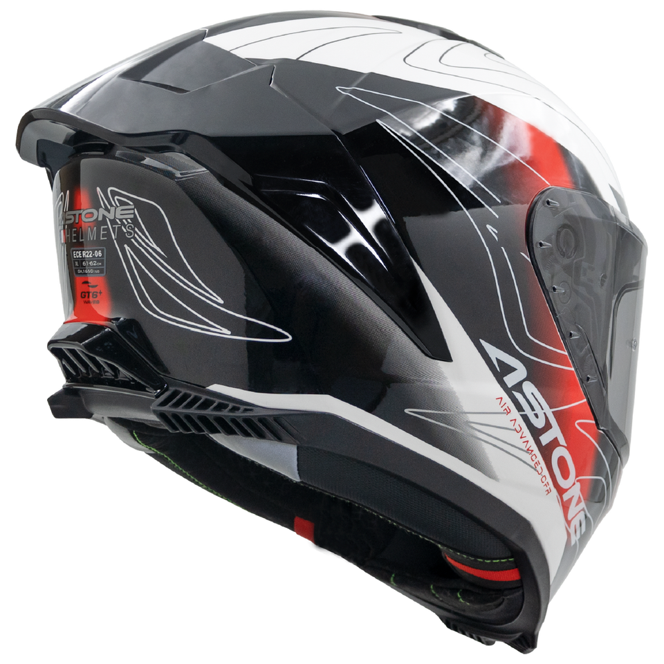 หมวกกันน็อคเต็มใบ GT6 PLUS WAVES สีขาว/แดง รุ่นใหม่ วัสดุ ABS สำหรับผู้ชาย ได้รับการรับรองมาตรฐาน ECE22.06 รับประกัน 1 ปี