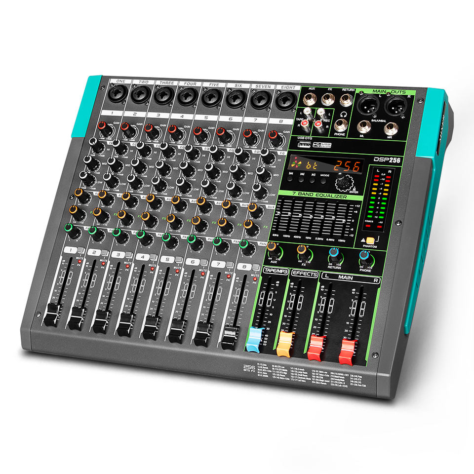 GT8 มิกเซอร์เสียงดิจิตอลระดับมืออาชีพ 8 แชนแนล พร้อมเพาเวอร์แอมป์ในตัว 500W*2 สำหรับสตูดิโอและการแสดงบนเวที