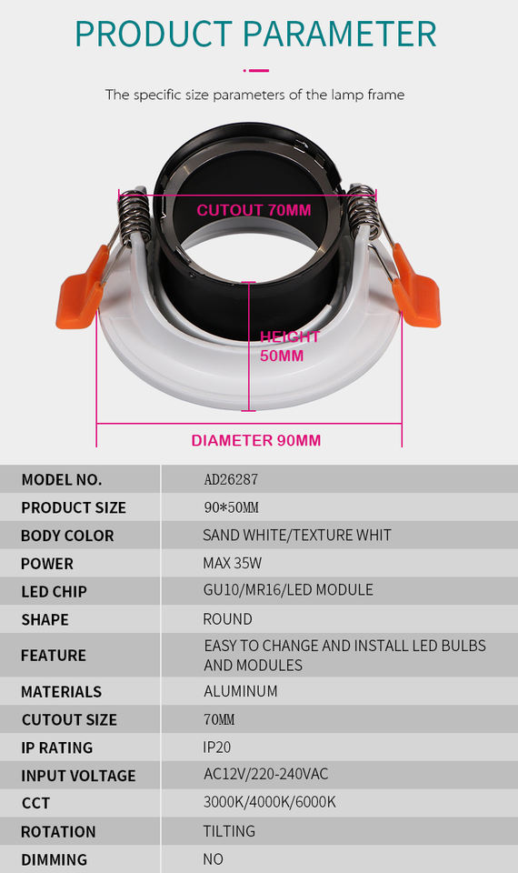 ประเภท:กรอบไฟสปอตไลท์ GU10