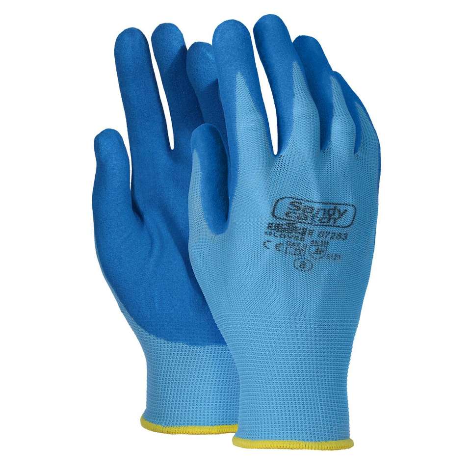 ถุงมือนิรภัยผ้าไนลอน Riv/nitr eff/sabb bl/ ไนลอนเคลือบไนไตรล์สีน้ำเงิน10สีเพื่อเพิ่มการมองเห็น