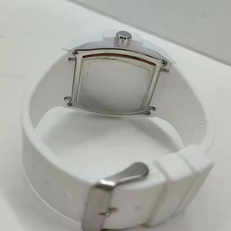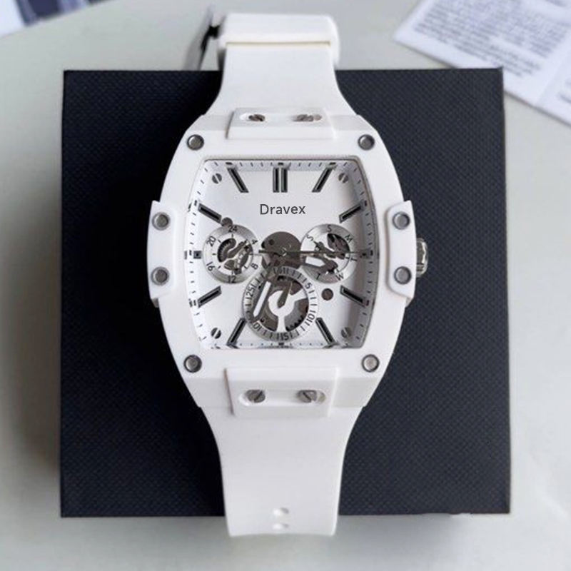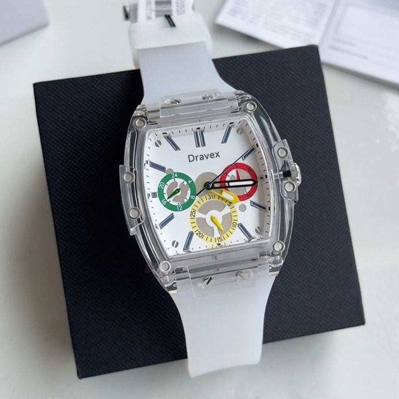นาฬิกาหรูสำหรับผู้ชายดีไซน์หน้าปัดใสนาฬิกาควอตซ์สีขาวโครโนกราฟสายซิลิโคนแฟชันในเมือง V1051M1