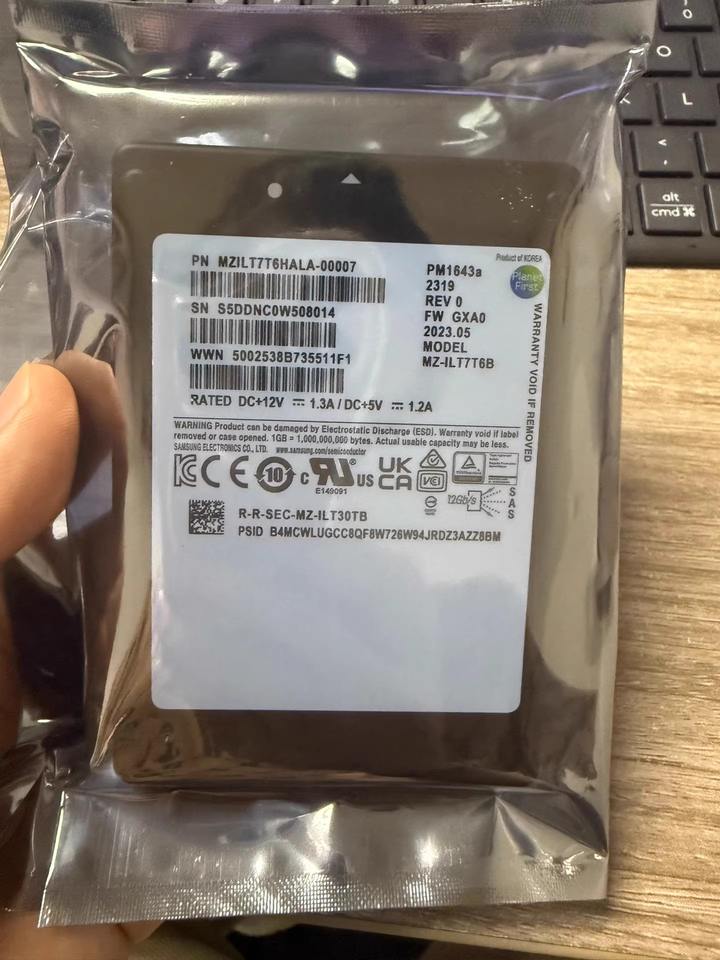 ไดรฟ์โซลิดสเตทของบริษัท GUIXING รุ่น MZILT7T6HALA-00007 PM1643a รองรับ SAS 7.68T SATA 6Gbps SSD