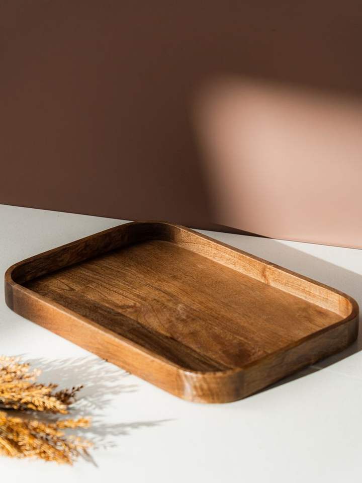 ถาดพิมพ์ลายไม้สำหรับผู้ชายถาดทรงสี่เหลี่ยมแกะสลักพร้อมหัตถกรรมอินเดีย