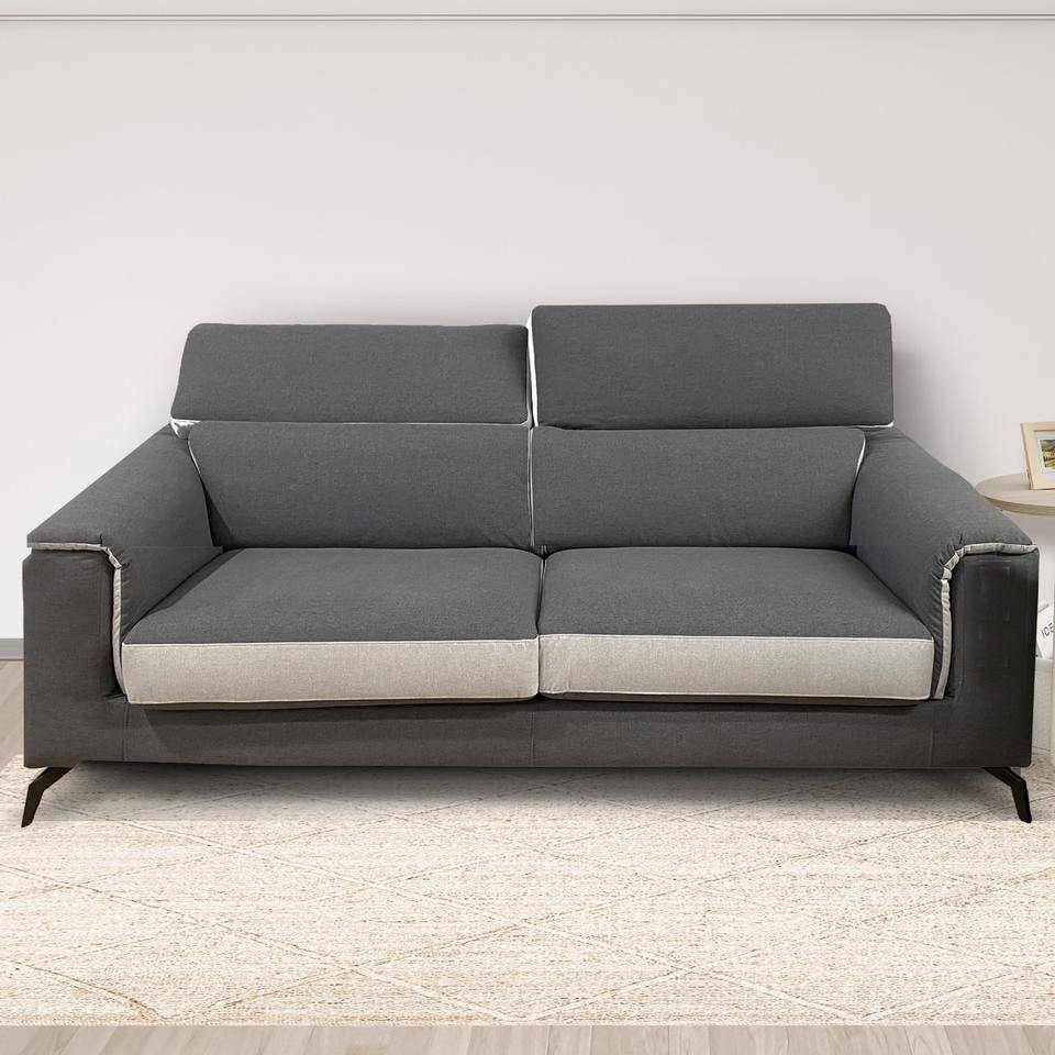 โซฟา 3 ที่นั่ง GWEN สีเทาเข้มและผ้าสีเงิน