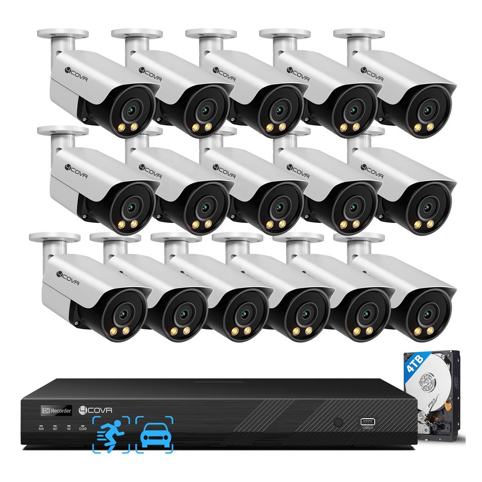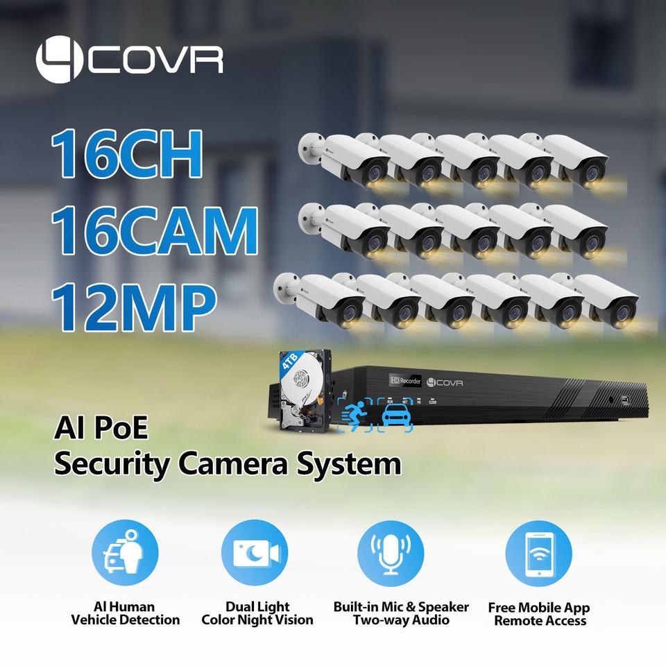 4COVR ระบบกล้องรักษาความปลอดภัย16x12MP 6K 4TB HDD POE ชุด NVR 4K สปอตไลท์4K ไซเรนเสียงสีเต็มรูปแบบ