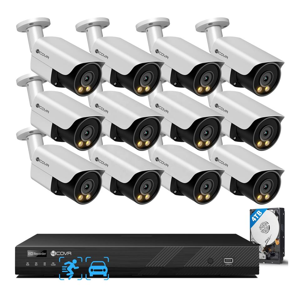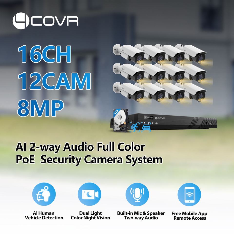 ระบบกล้องวงจรปิด 4COVR 12 ตัว ความละเอียด 8MP 16 ช่องสัญญาณ PoE NVR รองรับ 4K พร้อมเสียง 2 ทาง แบบใช้สาย สีสันคมชัด ระบบตรวจจับใบหน้าด้วย AI มองเห็นในเวลากลางคืน