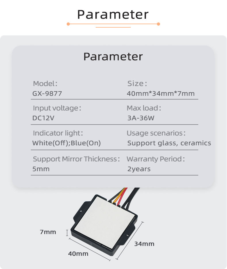 ชื่อผลิตภัณฑ์:สวิตช์เซ็นเซอร์สัมผัสกระจก