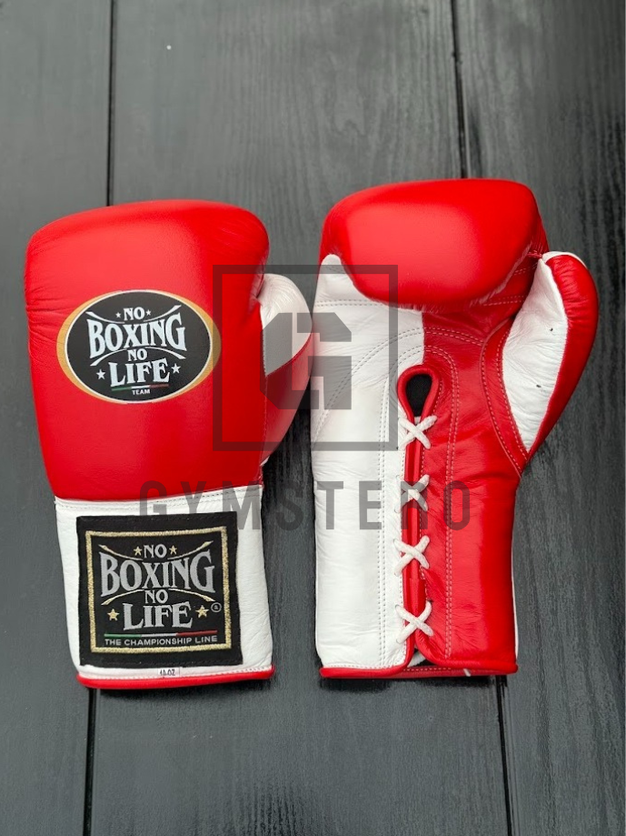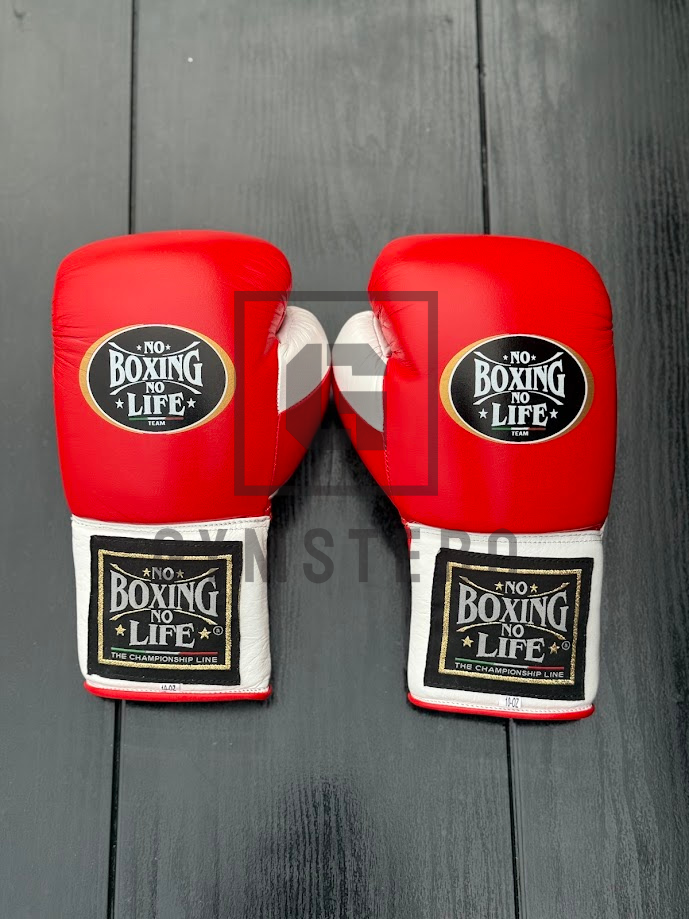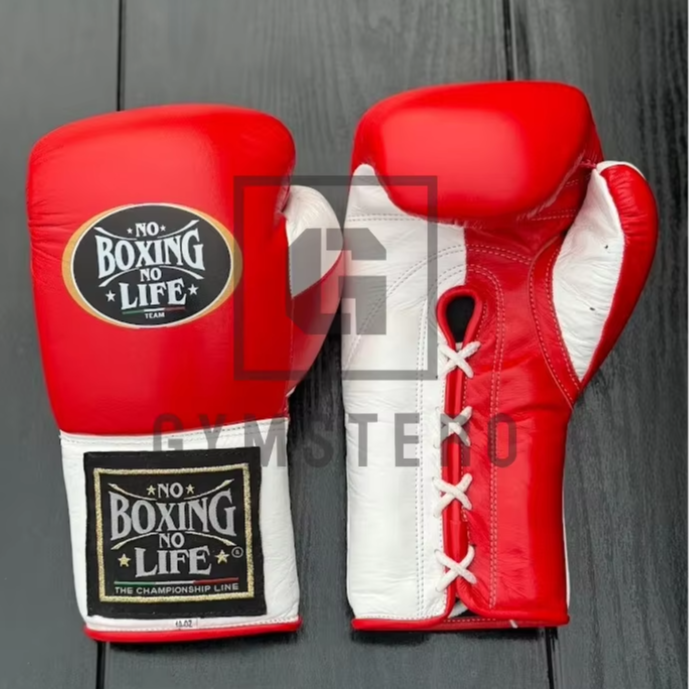 ถุงมือชกมวย GYMSTERO No Boxing No Life คุณภาพสูง หนังวัวแท้ ปิดนิ้วเต็มรูปแบบ สายรัดปรับได้ พร้อมโลโก้สั่งทำพิเศษ